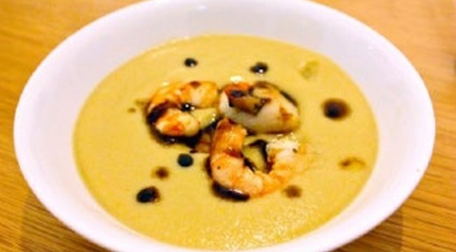 Beans poured soup with shrimps scented “DODICI CASTELLI”