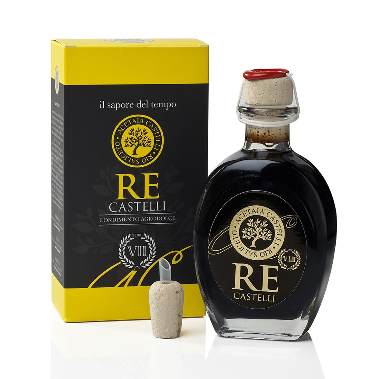 Characterized by a balanced flavor between sweet and sour and fruity. It gives a terrific fragrance of woods and cooked must. The color is dark and intense. Available in 100 and 250 ml formats.